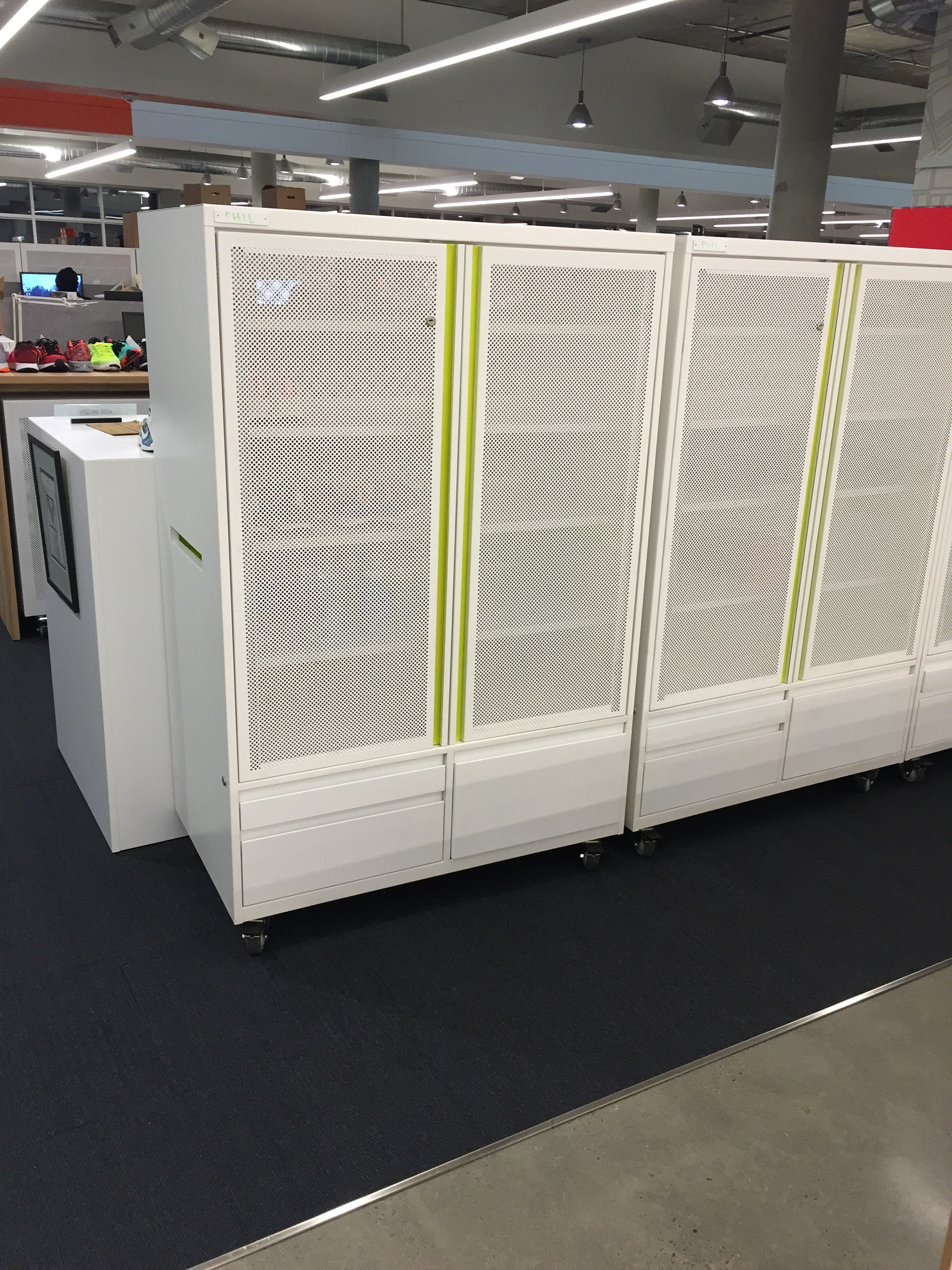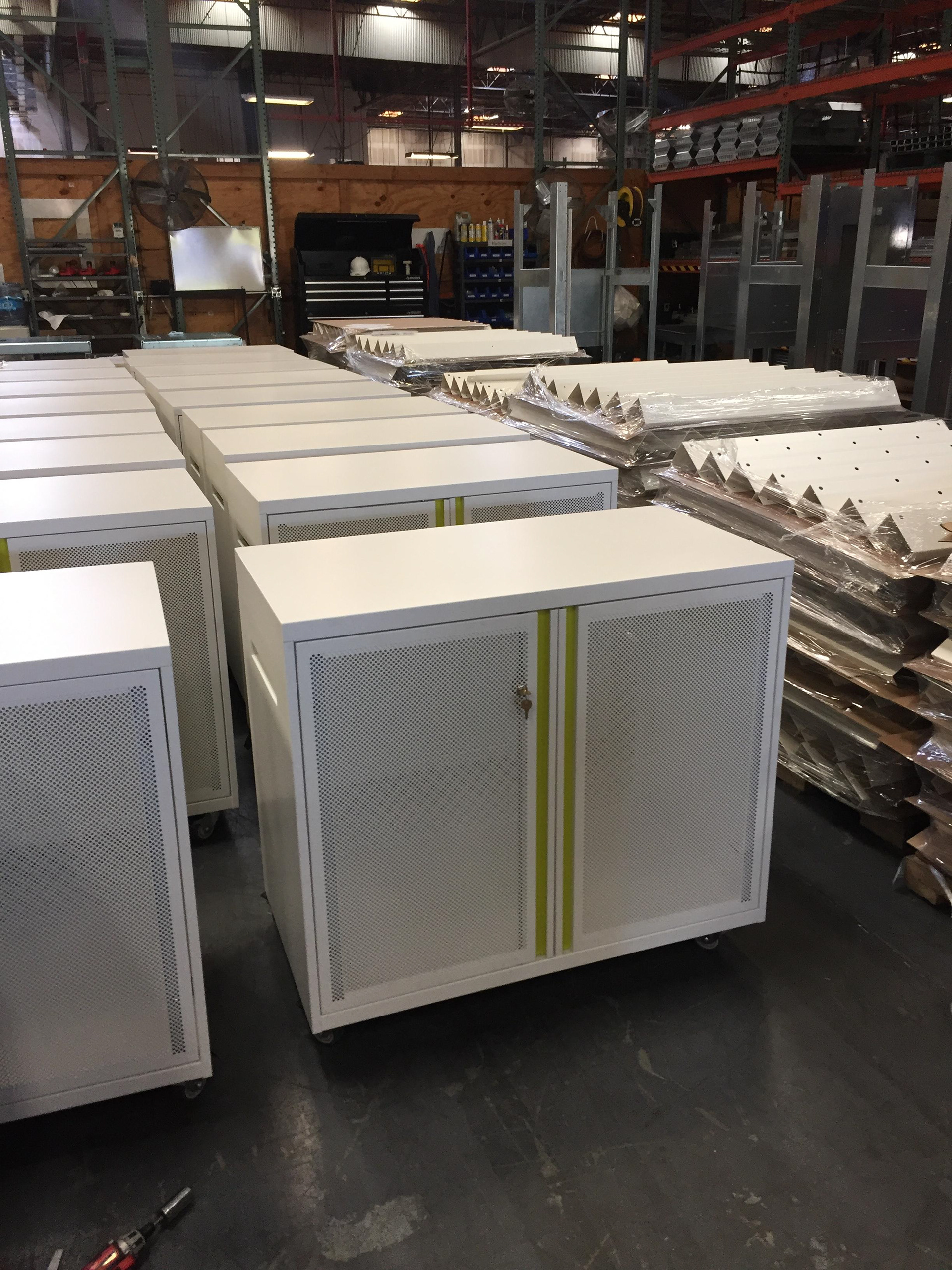My role in MASH as an Industrial Designer was to assist Ben Hopkins and Devin Connolly with the design, engineering and production of l the production for this project, all distributed in two different styles, a tall storage cabinet and a lower rolling mid-size cabinet, all 2 styles with personal storage and custom perforated pattern indoors and back panels for ventilation.