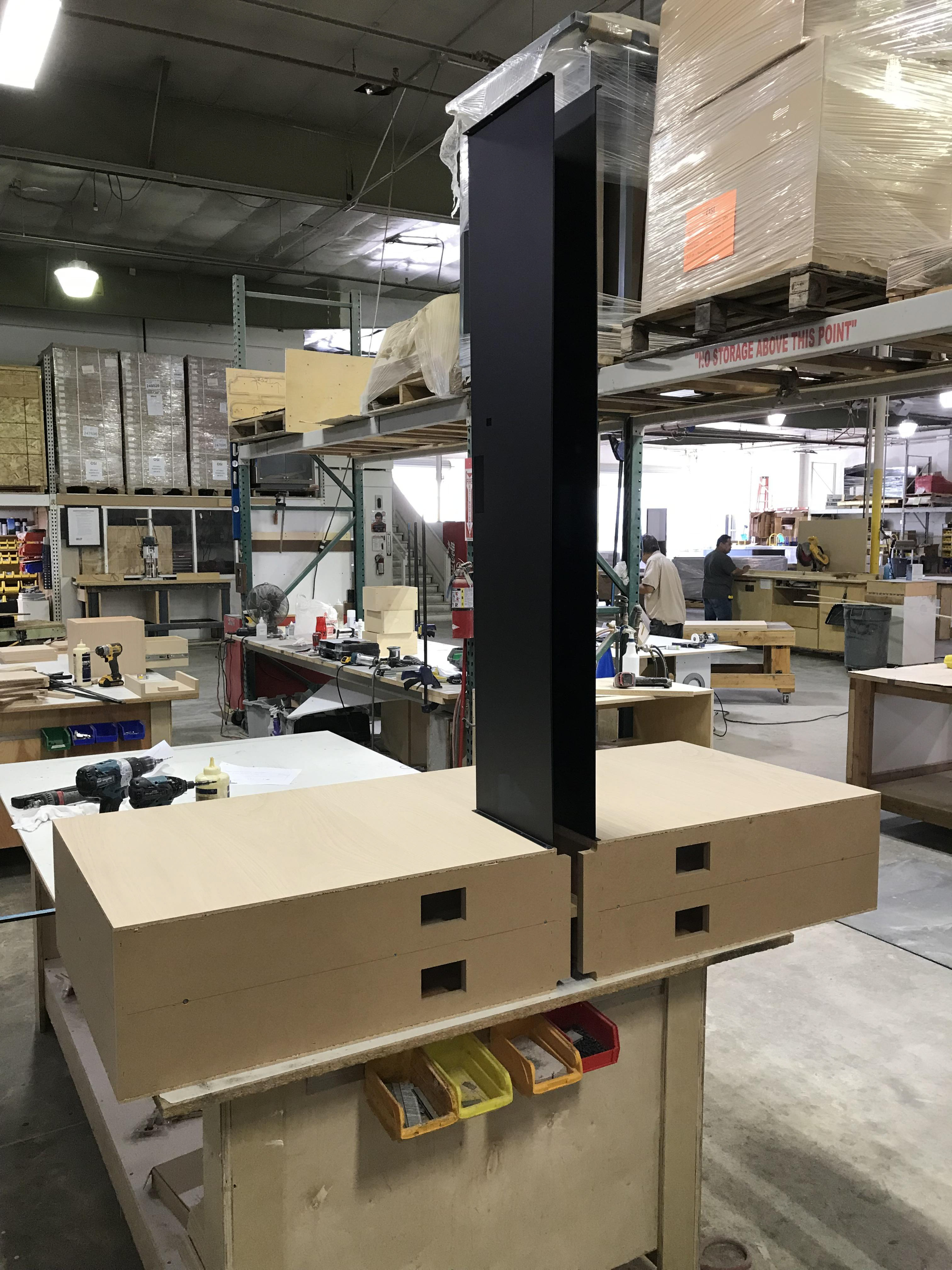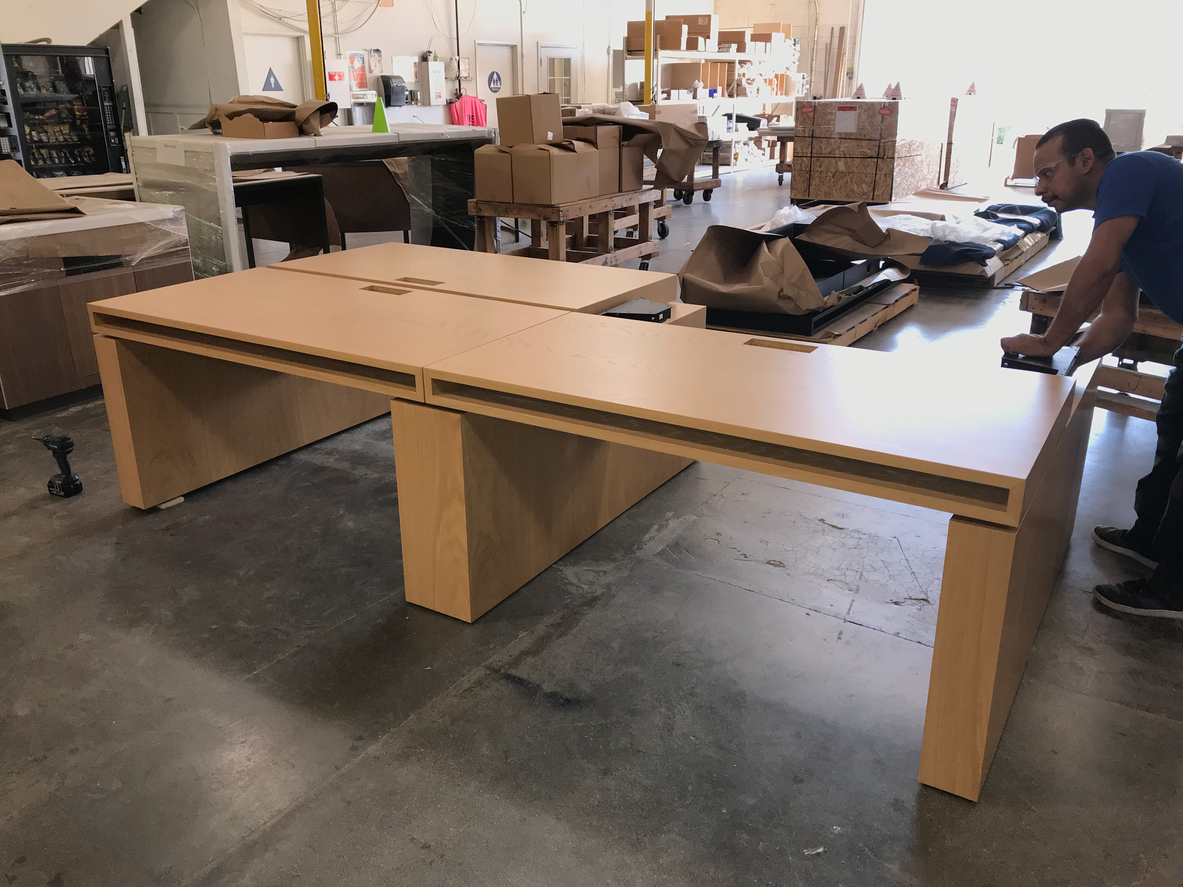 As Lead Industrial designer at SLATE, I was responsible for the engineering, production, and Logistics behind the installation of the office furniture for the entire floor for Rock Nation for Jay-Z the Rapper Artist, This installation included 110 positions of height-adjustable custom designed desks, all in a daisy-chain, the design was inspired by a Scandinavian rectangle aesthetics and clean straight lines in specially selected European White Oak that was imported essentially for this project, All executive suites were stained deep ebony color.